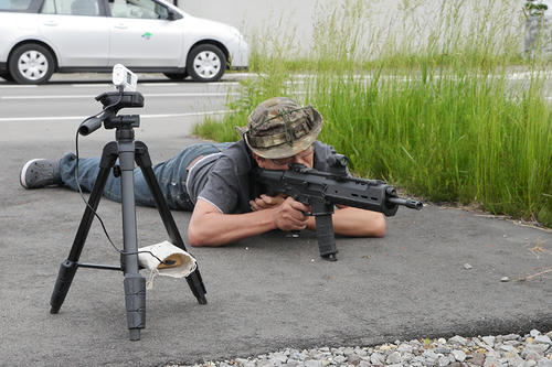 いやー迷彩の効果って絶大ですね!どっかのジャージでサバゲやってる人たちに見せてあげたいですわww