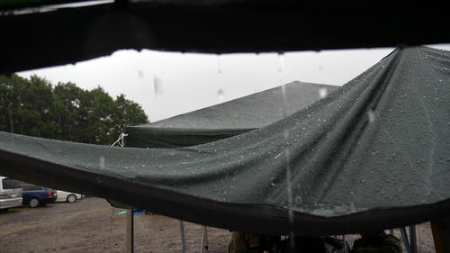 運営さまは晴れることを期待して続行を決めたもののさらに強まる雨足に